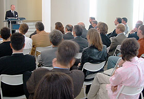 Gustav Werner Emrich von JVC ging in seinem Vortrag »2K-Bildauflösung für Design-, Entwicklung und kinotechnische Anwendungen in der D-ILA-Projektionstechnologie« auf unterschiedliche Einsatzgebiete dieser JVC-eigenen Projektionstechnologie ein. The Posthouse setzt JVCs neuen D-ILA-Projektor DLA-QX1 in seiner Color-Grading-Suite ein (siehe auch Meldung hierüber) und gibt damit farbkorrigierte 2K-Bilder wieder.