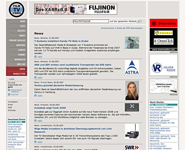 Der September 2009 markiert für film-tv-video.de ein Jubiläum: Vor zehn Jahren, zur IBC 1999, ging das Medium online. Mit einem Grundstock von rund 50 Artikeln, von denen nur wenige ein paar kleine Bilder enthielten. Man wollte den Nutzern, die sich in der großen Mehrzahl noch per Modem einwählten, keine zu langen Ladezeiten zumuten. Es gab teilweise durchaus große Skepsis gegenüber film-tv-video.de: »Das wird niemals funktionieren. In spätestens einem halben Jahr sind die pleite«, so lauteten damals die Prognosen von einigen in der Branche.