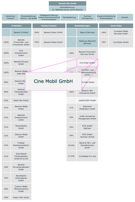 Fakt ist: Das Rental-Unternehmen Cine-Mobil wurde 2005 von der Bavaria übernommen, Geschäftsführer sind Jörg Baumgart und Heinz Ratzinger. Die Übernahme des Unternehmens fand zu Zeiten statt, als Marc Böckenförde Geschäftsführer der Bavaria Production Services war. Jörg Baumgart und Heinz Ratzinger betreiben parallel zu Ihrer Tätigkeit bei Cine-Mobil auch noch außerhalb der Bavaria-Gruppe das Unternehmen Movie Light GmbH. Zwischen Cine-Mobil und Movie Light bestehen regelmäßige Geschäftsbeziehungen.