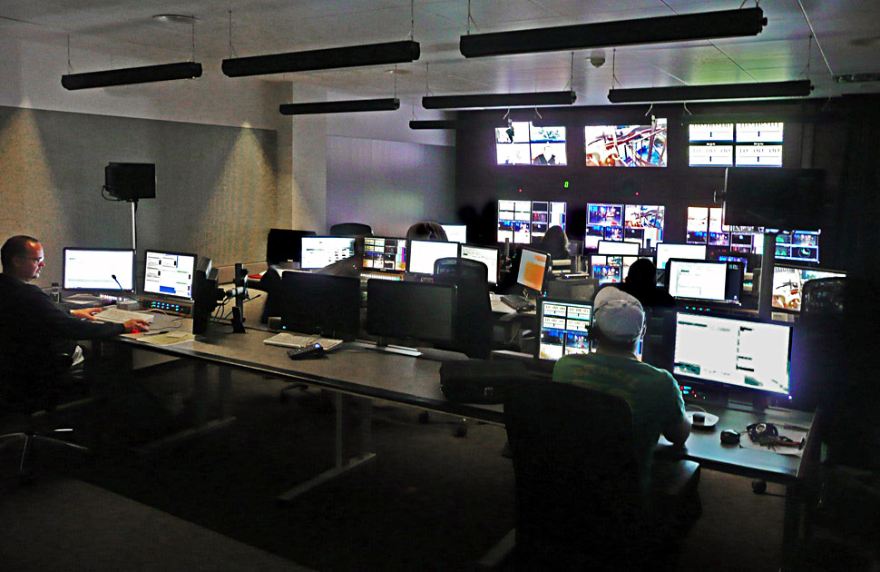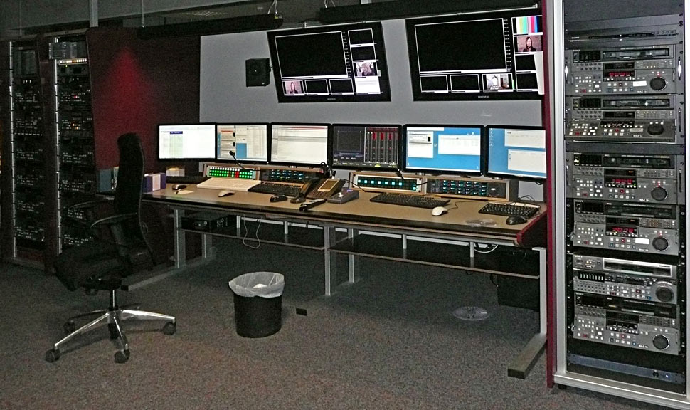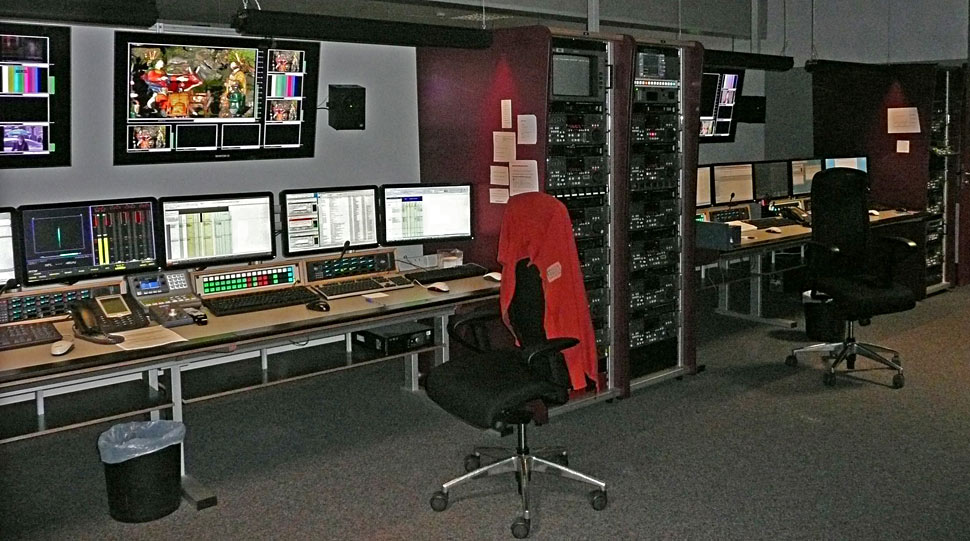 Die Bildregien der Studios sind mit Sony-Mischern des Typs MVS-8000G mit drei M/E-Ebenen ausgerüstet. Die Hauptkreuzschiene mit 512er-Matrix und das 128er-Havarie-System, sowie der überwiegende Teil des Modular-Equipment kommen von Harris. Für Aufzeichnung und Zuspielungen werden Harris-Server eingesetzt, die mit fünf In- und zehn Out-Kanälen bestückt sind. Als Multviewer sind Centrio-Systeme von Harris im Einsatz. »Das hat für uns den Vorteil, dass der Multiviewer direkt in die Kreuzschiene integriert ist, was uns Unmengen an Verkabelung erspart hat«, erklärt Markus Eicher.