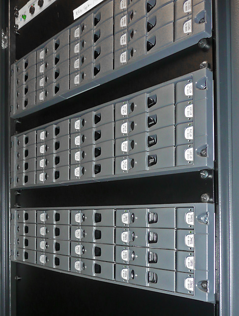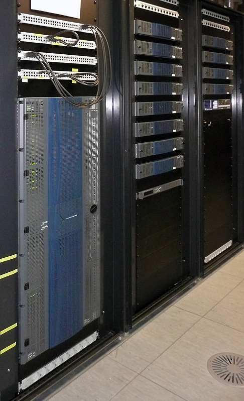 Alle FCP-Schnitträume sind an eine zentrale Speicherarchitektur auf Basis von Harris-Servern des Typs Nexio AMP (Meldung) angebunden. »Die meisten Kunden wollen diese Kombination nutzen, weil sie etliche praktische Vorteile bietet. »Wir wollten eine Zentralspeicherlösung haben, die eine direkte Anbindung der Schnittsysteme erlaubt, und zwar ohne dass hierfür zusätzliche Softwares oder Tools wie etwa der Transfer-Manager nötig wären«, erklärt der Technikchef. Andere Systeme, wie Media Grid von Omneon (D-Vertrieb: >ADR 38585>Netorium) kamen als Zentralspeicher prinzipiell ebenfalls in Frage, aber letztlich fiel die Wahl auf Nexio AMP, weil hier »ein lineares Wachstum und ein vergleichsweise günstiger Einstieg möglich waren«, so Eicher (Meldung).