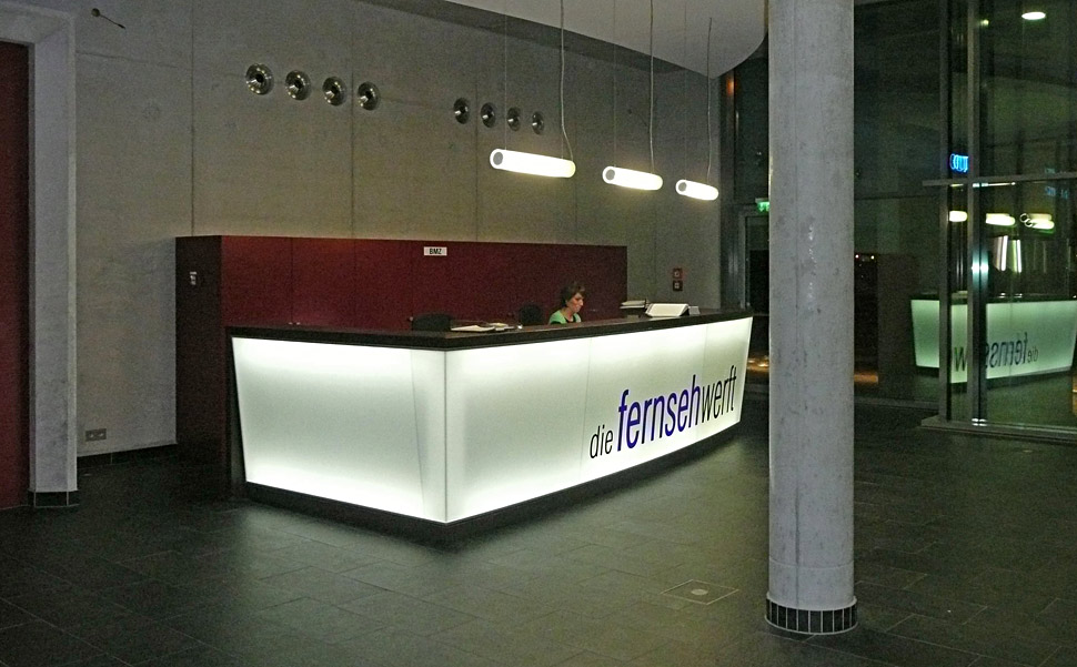»Die Planung für die Fernsehwerft haben wir ohne einen konkreten Kunden begonnen. Unser Ausgangspunkt war ein modernes Produktionsgebäude mit zwei Studios, 28 Schnittplätzen und vier Audio-Suiten. Später wurde dann klar, dass Sat.1 und Maz & More im neuen Gebäude auch einige Büroräume haben wollte, so haben wir etwas umgeplant«, erklärt Markus Eicher.