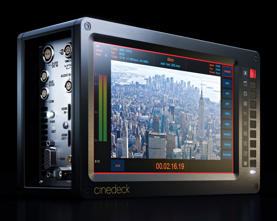 Als mögliches Aufzeichnungsmedium bietet Cinegate für die Alexas, Reds und andere Digitalkameras aus dem eigenen Verleihprogramm den Cinedeck-Dockrecorder an. Das Gerät sei sehr einfach zu bedienen, was den Einsatz am Set deutlich erleichtere, urteilt Daniel Sippel von Cinegate. Bis dato hat Cinegate den Recorder schon beim Dreh einiger Commercials eingesetzt, derzeit werde das Deck auch bei der Produktion eines Kinofilms verwendet. Als großes Plus bei Cinedeck nennt Cinegate den engen Kontakt zum Entwicklerteam, das sehr gut auf die Anforderungen aus der Praxis eingehe und das Gerät kontinuierlich weiter entwickle.