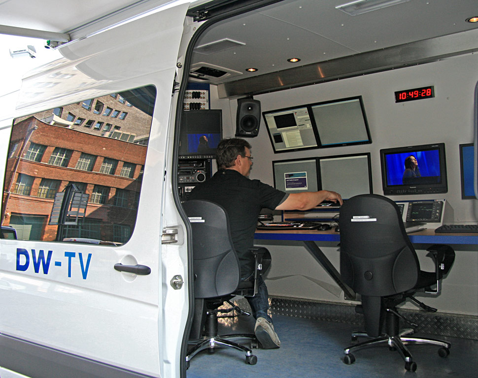 DW-TV, der TV-Sender der Deutschen Welle mit Sitz in Berlin, betreibt ein modernes Schnittmobil, dessen Herzstück ein Avid-Unity-System mit Interplay und drei Media Composern bildet.