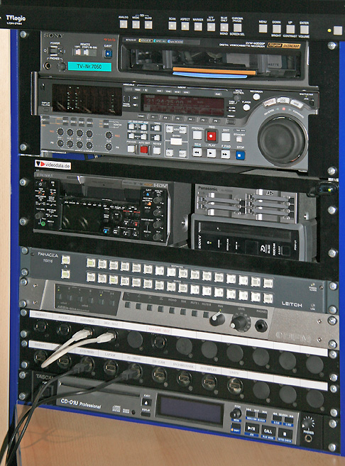 An Zuspielgeräten stehen ein HDV-Recorder des Typs HVR-M35, ein XDCAM-Laufwerk PDW-U1 und eine Digi-Beta-Maschine DVWM-2000P von Sony bereit, sowie ein P2-Laufwerk des Typs AJ-PCD20 von Panasonic. »Damit können wir letztlich alle gängigen Band- und Speicherformate abdecken«, so Peter Burkert, der Mitarbeiter im Technik-Support von DW-TV ist. Sollte eine der eingebauten Mazen ausfallen, oder ein anderes Format nötig sein, kann auch problemlos über ein vorkonfektioniertes Kabel eine externe Maz an die eingebaute Kreuzschiene angeschlossen werden.