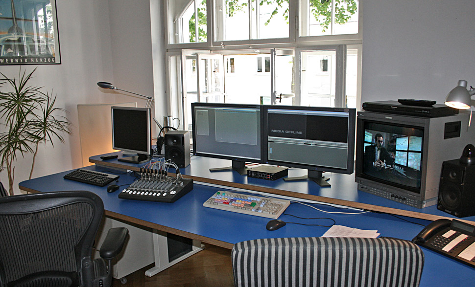 Will man das von MSF beschriebene Ziel erreichen, dann reicht es heute in der Tat nicht mehr aus, einfach nur einen PC-Schnittplatz und eine Espressomaschine zu besitzen. Und so findet sich auf den 325 Quadratmetern Altbau von MSF modernste Technik, die von HDCAM SR abwärts alle gängigen Formate verarbeiten, transkodieren und wieder ausspielen kann — letzteres auf Wunsch auch als DVD oder Blu-ray Disc. Für den Schnitt stehen vier komplett ausgestattete Avid-Suiten der neuesten Versionen zur Verfügung, weiter zwei Avid DS-Systeme für Compositing– und Finishing-Aufgaben und ein Nucoda FilmMaster fürs Grading — um nur das wichtigste Equipment zu nennen.