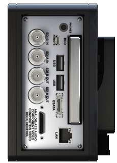 Die Datenspeicherung erfolgt auf handelsüblichen, austauschbaren 2,5-Zoll-SSDs mit Sata-Schnittstelle. Da eine SSD keine mechanischen Teile besitzt, ist das System unempfindlich gegen Erschütterungen. Zur Datenübertragung auf Mac oder PC wird die SSD aus dem Rekorder entfernt und an das mitgelieferte Dock angeschlossen. Um die Aufnahmekapazität zu erhöhen, kann zudem ein externes Laufwerk per E-Sata angeschlossen werden. Die Spannungsversorgung erfolgt wahlweise per Netzteil oder Akku (Anton Bauer- und V-Mount).