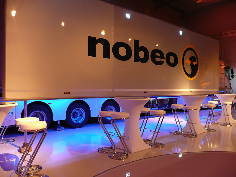 Mit von der Partie und für die Besucher zur Besichtigung bereit, war der von Sono Studiotechnik gebaute HD-Ü-Wagen von Nobeo. Der verdeutlichte an seinem Standplatz in der Montagehalle auch deren Dimensionen: In die große, hohe Halle mit Fußbodenheizung würden sogar zwei solche stattlichen Sattelauflieger-Fahrzeuge hintereinander passen. Am Freitag waren dort aber statt eines zweiten Fahrzeugs eine Bar und eine Bühne für eine Live-Band aufgebaut.