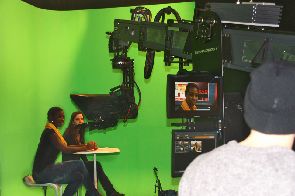 Im gegenüberliegenden Studio A2 wurde durch Moderationen der Medienakademie dem virtuellen Studio reales Leben eingehaucht. Das virtuelle Studio wurde unter Einsatz des Kamerakrans Technocrane von Technodolly, des Chroma-Keyers U11 von Ultimatte und dem virtuellen Set des Echtzeitgrafiksystems von Orad realisiert. Auch die transportable 270-Grad-Greenbox kam von Technocrane. Die Verbindung dieser drei Systeme ermöglichte ein perfektes Zusammenspiel und wurde so zum Blickfang für die Besucher.