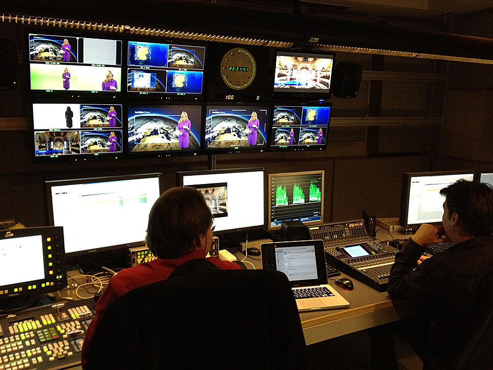 Im Zuge der Migration von SD-SDI nach HD-SDI entkernte Sono die gesamte Regie mit angrenzendem Schaltraum und baute sie neu in HD auf. Die Installation umfasste neben dem Bildmischer Kahuna von Snell mit 3 M/Es auch drei Grass Valley-Kameras des Typs LDK 3000 mit Fujinon-Objektiven, VTS-Displays, XDCAM-HD-Recorder des Typs PDW-F1600 von Sony sowie eine Snell-HD-Kreuzschiene mit 128×128-Matrix mit integrierten Glasfaser-Ports für die Verbindungen zu den Konferenzzentren im Gebäude. Zahlreiche weitere Komponenten übernahm Sono Studiotechnik aus dem Bestand, darunter ein VSM-Controller-System, Riedel Intercom, Lawo-Nova 73 Kreuzschiene, Yamaha PM5D Mischpult, Harris Inscriber HD und X50 Signalprozessoren, Modular-Equipment von Lynx und Avid-Schnittsysteme. Sono realisierte das Projekt in nur drei Monaten.