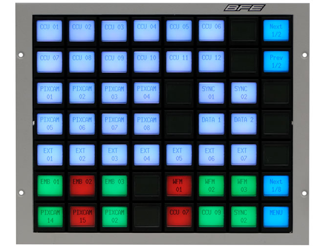 Die vier zentralen Kreuzschienen, die der BR in Unterföhring für Video, Audio, Timecode und Remote-Steuerung einsetzt, werden dezentral über die grafische Oberflächen von sechs KSC-Pilot-Clients geschaltet. Wiederkehrende Schaltvorgänge können automatisiert werden. Manuelle Schaltvorgänge sind in den verschiedenen Arbeitsbereichen jederzeit über die insgesamt 38 dort installierten Bediengeräte möglich. Dabei kommen BFE-Bedienpanels der Typen BD68, BD51, BD39, BD32 und BD17 mit nach Kundenwünschen belegten Tastenfeldern zum Einsatz.