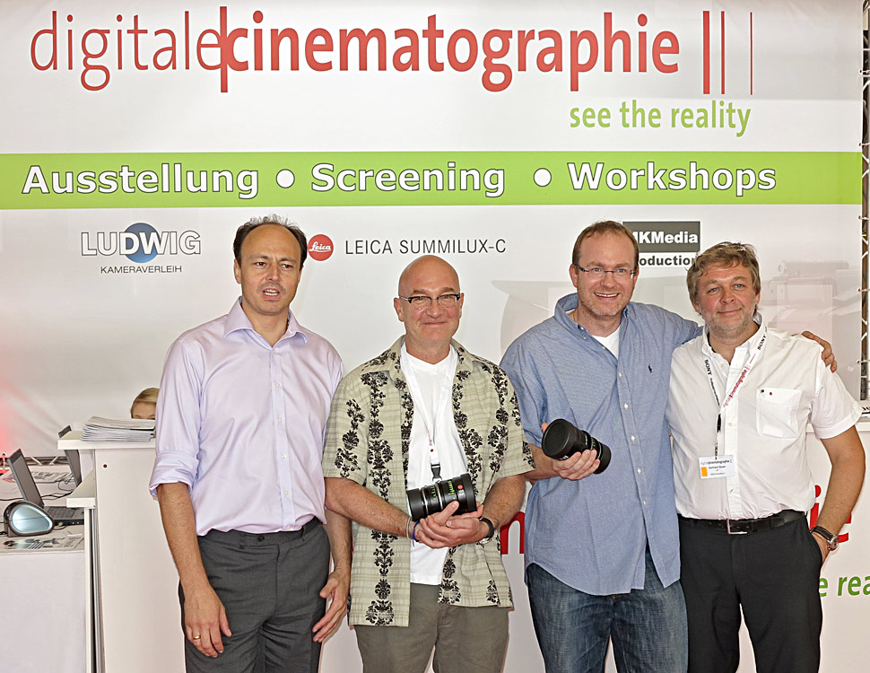 Eines der beiden ersten in Deutschland ausgelieferten Sets aus Leica-Festbrennweiten der Baureihe Summilux C nahm im Rahmen der Digitalen Cinematographie in München das Rental-Unternehmen FGV Schmidle in Empfang.