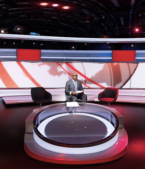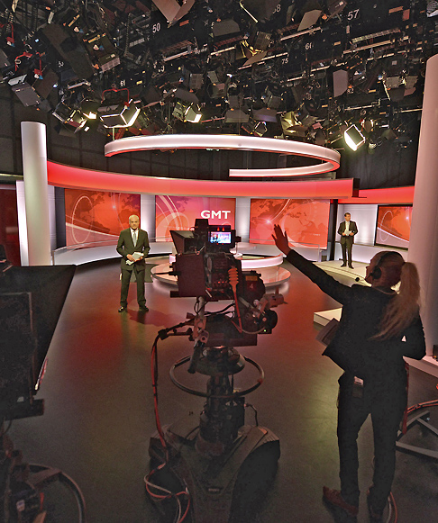 Farb-Setup und Lichtstimmung des Studios lässt sich per Knopfdruck verändern, so dass sich im gleichen Studio Formate mit ganz unterschiedlichen Looks realisieren lassen: »Newsday« etwa und »World Business Report«.