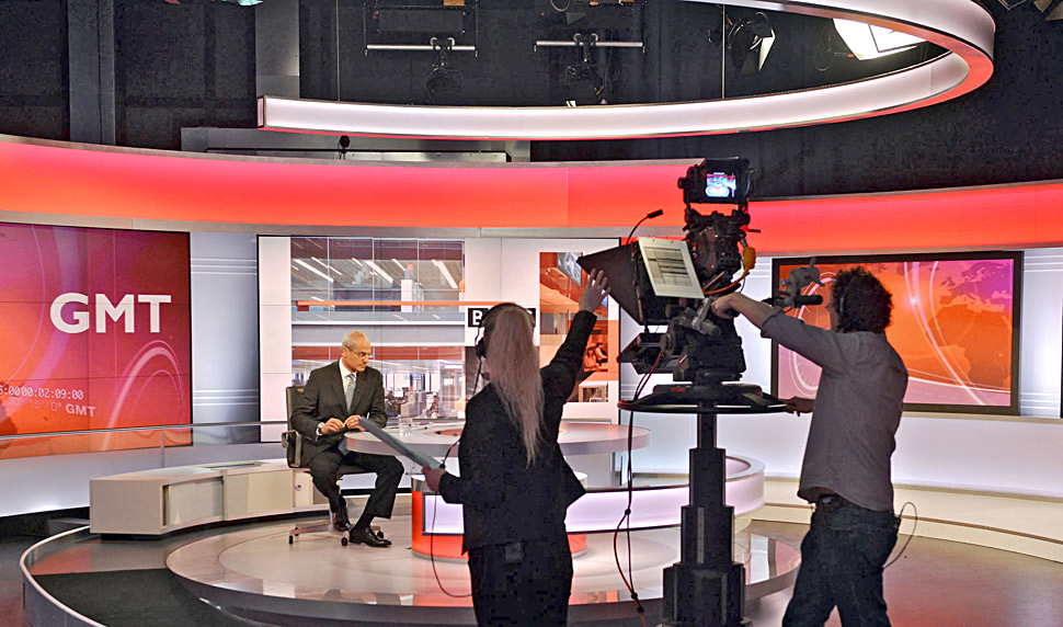 Das hohe Ansehen der BBC hat in der jüngsten Zeit zwar einige Kratzer abbekommen, aber aus deutscher Sicht gilt die BBC unverändert als Hort großer Tradition und Professionalität, die ihren Ausdruck unter anderem in Top-Serien und Dokumentationen findet. Die BBC hat aber noch viele weitere Gesichter und betreibt etwa mit dem Nachrichtenkanal BBC World News einen der renommiertesten News-Spartenkanäle der Welt. Seit Frühjahr 2013 sendet dieser aus dem brandneuen East Wing des Broadcasting House in London. film-tv-video.de war vor Ort, hat sich den »World’s Newsroom« mit den neuen, angegliederten Studios angesehen und konnte mit Ken Connell und Mike Kavanagh sprechen — zwei der News-Spezialisten, die hinter der neuen Installation stehen.