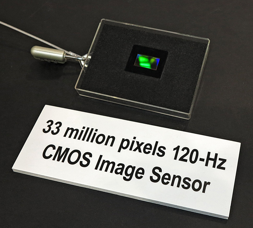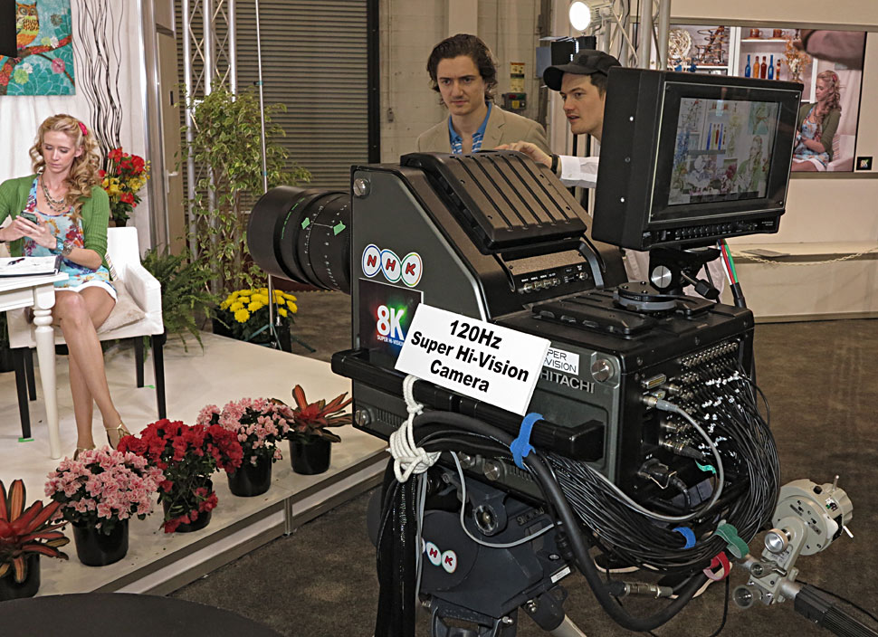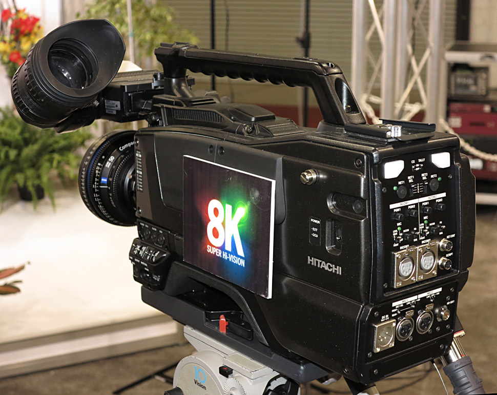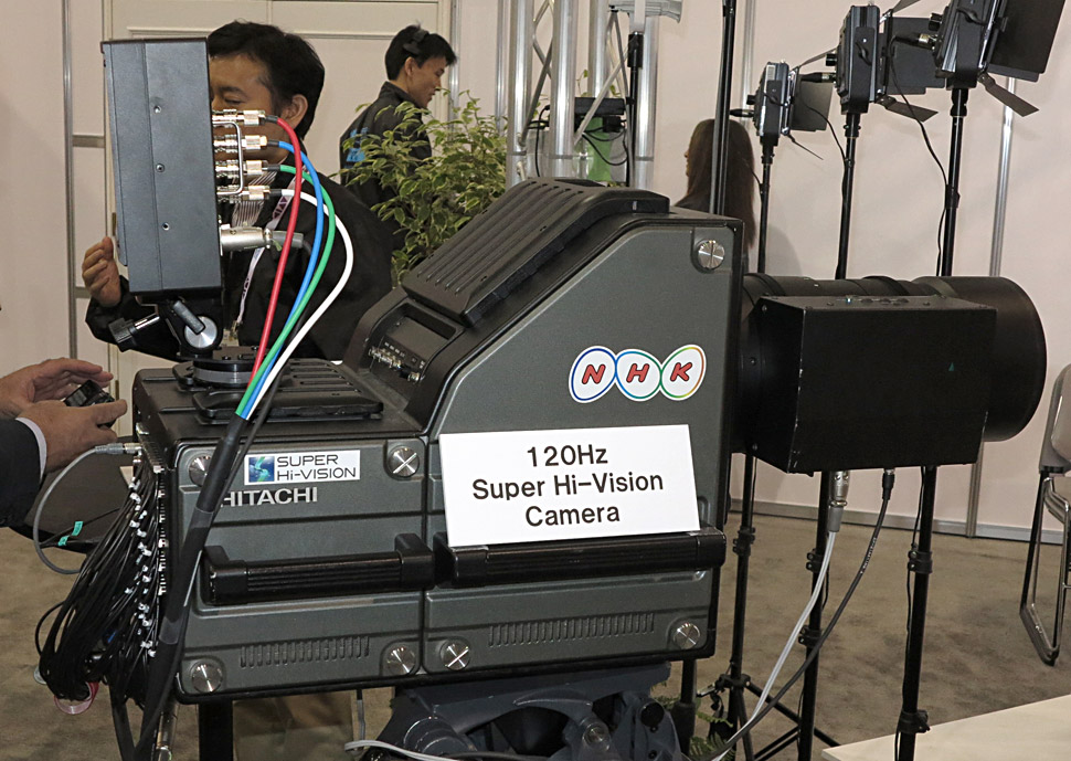 Zusätzlich gab es am Super-Hi-Vision-Stand eine Kamera mit den Abmessungen eines ganz normalen Schulter-Camcorders zu sehen, die als Single-Sensor-Kamera mit einem 33-Megapixel-CMOS-Bildwandler ausgelegt ist. Im Zusammenspiel mit 35-mm-Fotoobjektiven der höchsten Qualitätsstufe soll diese Kamera 8K-Aufnahmen mit einem kleineren Formfaktor ermöglichen. Zwar handelt es sich bei diesem Gerät (noch) nicht um einen Camcorder, sondern um eine reine Kamera ohne interne Aufzeichnungsmöglichkeit, aber an einem andockbaren Recorder werde entwickelt, ließen die Ingenieure am Stand wissen.