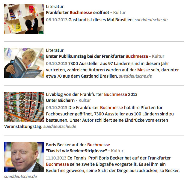 Die Tageszeitung nutzte die Technologie während der Frankfurter Buchmesse für die Übertragung von zwei Live-Streams. Der erste Stream wurde über vier SIM-Karten (2x 3G, 2x 4G) und WiFi bereitgestellt. Der zweite Stream wurde nur per SIM-Karten übermittelt. Beide Streams wurden mit einer konstanten Geschwindigkeit von 3,6 Mbit/s bei nur geringen Schwankungen gesendet. Während der Messe wurden Buchautoren interviewt und diese Inhalte dann auf das Online-Portal der Süddeutschen Zeitung übertragen. Die erfolgreiche Umsetzung erfolgte in Verbindung mit Streamlabs und Netorium, dem deutschen Partner von LiveU.
