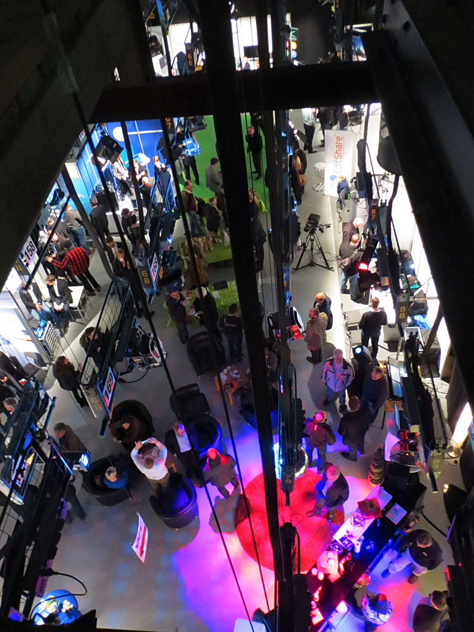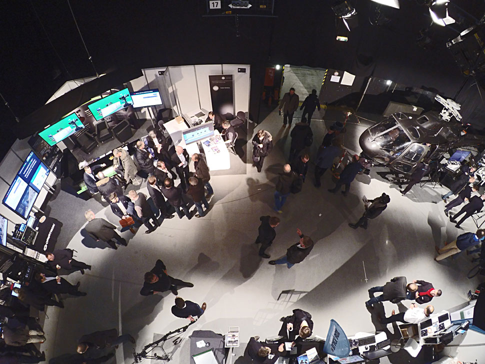 Über 80 Aussteller präsentierten ihre aktuellsten Produkte und boten viel Raum zum Ausprobieren. Auf dem Gemeinschaftsstand von Vislink, Cineflight und Rentevent konnten sich die Besucher sogar im Inneren eines Helikopters ein Bild davon machen, wie eine Drahtlos-Live Übertragung aus der Luft produziert wird.