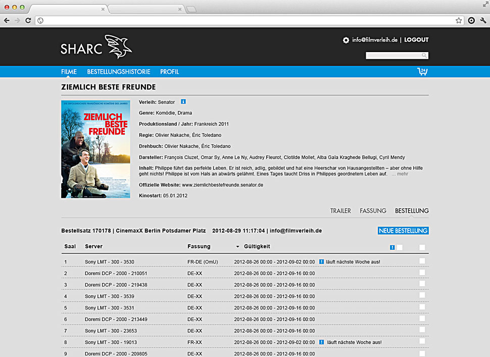 Thomas Ramin, Bereichsleiter bei CinePostproduction, sagt dazu: »Viele unserer Studio- und Postproduction-Kunden haben Aspera schon genutzt, um uns Inhalte zuzuliefern. Die Integration von Aspera on Demand in unsere Sharc-Distributionsplattform hat sich daher angeboten und sorgte für weitere Vorteile beim Highspeed-Transfer von DCPs in die Kinos über unsere Sharc-Plattform.«
