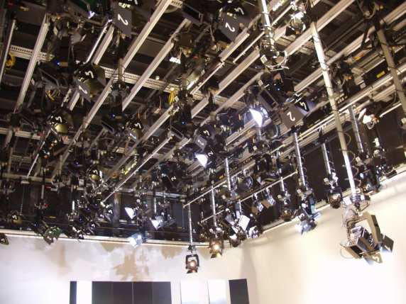 Die Studioausrüstung besteht aus automatisierter Teleskop- und LED-Scheinwerfertechnik, zusätzlichen Stangenleuchtenhängern für Effekt- und Zusatzlicht sowie AV-Technik und einer Cyclo-LED-Hintergrundbeleuchtung. Die LED-Scheinwerfer RGBW mit 200 und 400 W Leistung und 2.800 bis 10.000 K Farbtemperatur, erzeugen weißes sowie farbiges Licht und die Licht- und Farbparameter sind auch nachjustierbar. Zusätzlich gewährleisten der Wirkungsgrad der LED-Lichtquellen und die hohe Lebensdauer die Wirtschaftlichkeit und die Nachhaltigkeit der Investition.