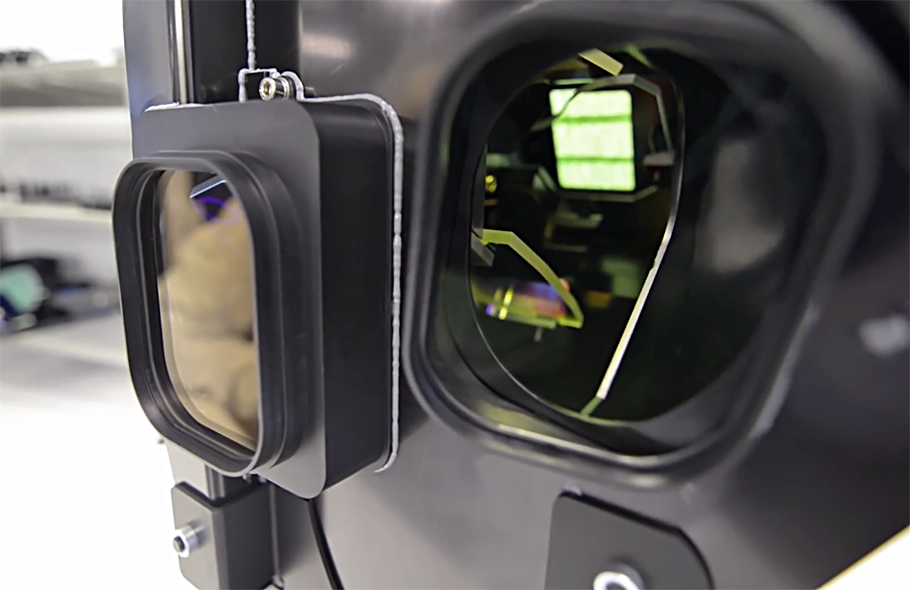 So wurde etwa auf einen konventionellen Strahlenteiler verzichtet und statt dessen ein neuer 3-Weg-Licht-Engine entwickelt, der aus Invar gefertigt ist, einer extrem temperaturstabilen Eisen-Nickel-Legierung. Die darüber hinaus verwendeten Materialien tragen zudem zu einer wesentlich besseren Lichtausbeute, also einer helleren Projektion bei. Der optimierte Kontrastumfang wirkt sich besonders in der differenzierteren Wiedergabe von Schwärzen und Lichtern aus.