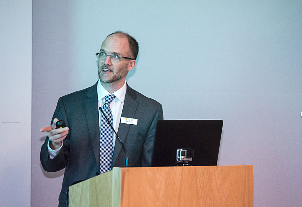Muriel De Lathouwer, CEO und Managing Editor von EVS, eröffnete die Veranstaltung, bevor James Stellpflug, VP Produkt Marketing, in seiner Präsentation auf die Frage einging, inwieweit Fans ein Interesse daran haben, mit digitalen Endgeräten auf zusätzliche Inhalte zuzugreifen – etwa solche, wie sie EVS C-Cast liefern kann.