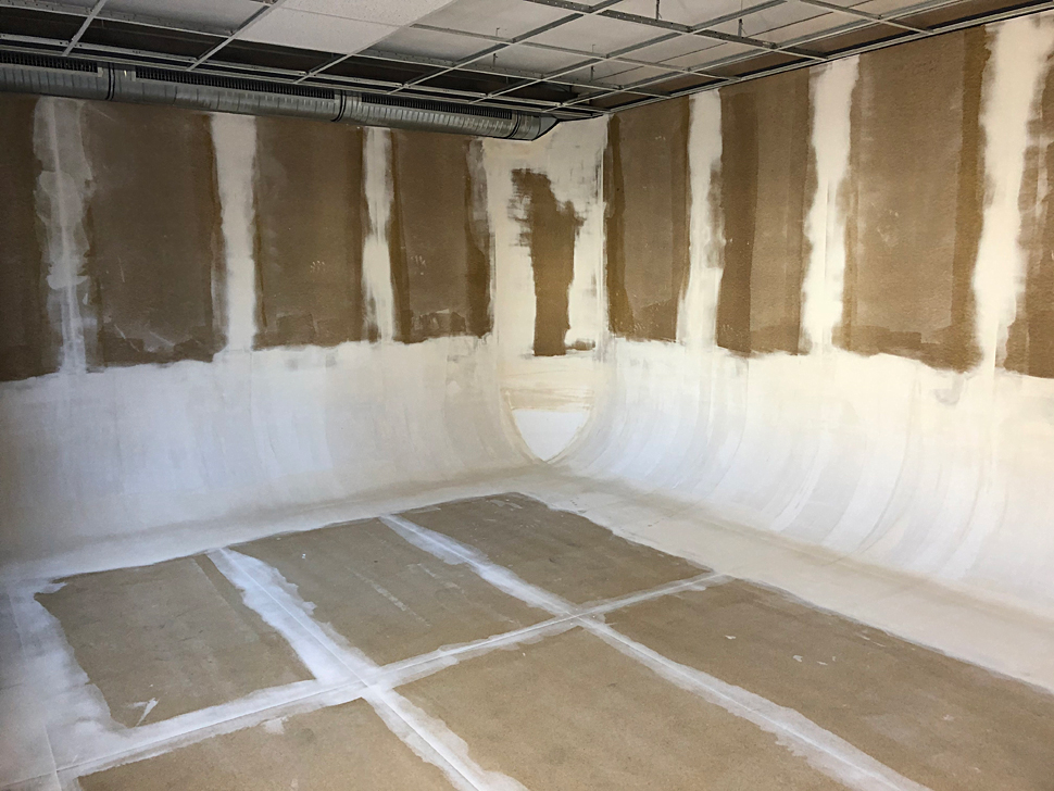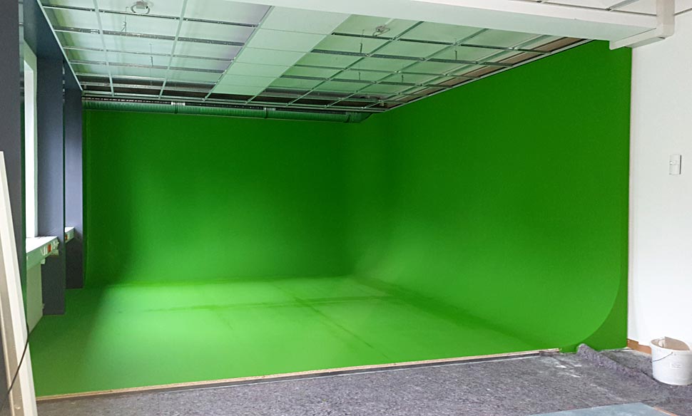 Das Green-Area wurde als L-förmige »Cyclorama Construction« umgesetzt und in der VR-Studio-Farbe RealGreen gestrichen. Als Beleuchtung wurde extrem homogenes Licht eingesetzt: das ist ein KST-VR-Lichtset mit 5.900 K Farbtemperatur.