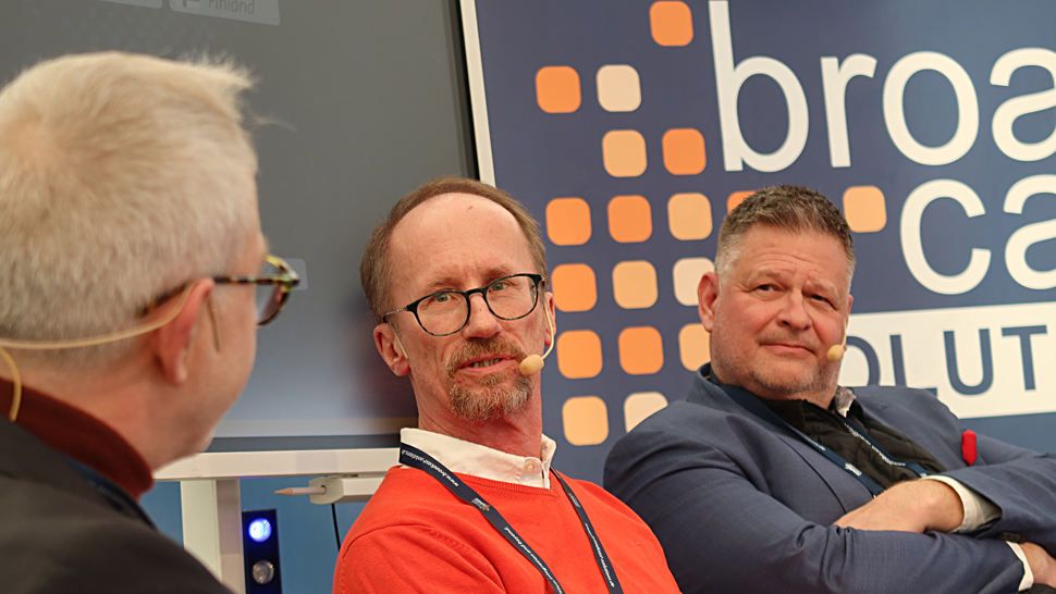 Beim zweiten Panel — moderiert von Ronald Meyvisch — diskutierten die Produktionsdienstleister Mats Berggren, COO von DMC Norway und Christer Pålsson, President von NEP Europe, mit den Herstellervertretern Thomas Riedel, Group-CEO von Riedel Communications, Alex Redfern, CTO von EVS, und Klaus Weber, Director Camera PLM von Grass Valley, mit Antti Laurila, Chief Strategy Officer von Broadcast Solution, der die Systemintegratorseite repräsentierte.