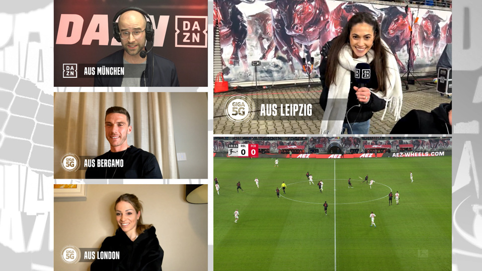 Per 5G-Livestream kommentierten Robin Gosens und Melanie Leupolz live bei einer DAZN »Watchparty« da…