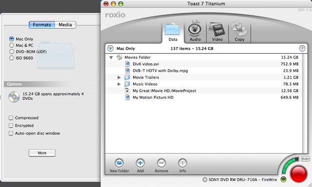 Die Software Toast 7 von Roxio läuft auf Apple-Rechnern und unterstützt auch Blu-ray-Laufwerke.
