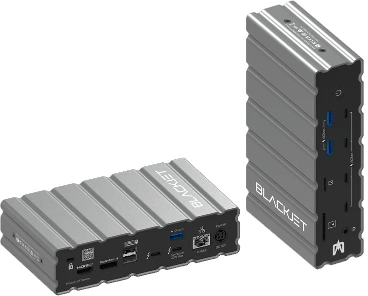 Mit 17 Anschlüssen bietet die Blackjet RX-4 Raiden Thunderbolt 4 Dockingstation von Atech Flash Tech…