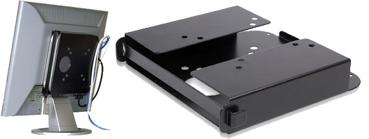 Ordnung muss sein: Ein Montageset der US-Firma Sonnet verstaut den Mac Mini unsichtbar hinter dem Mo…