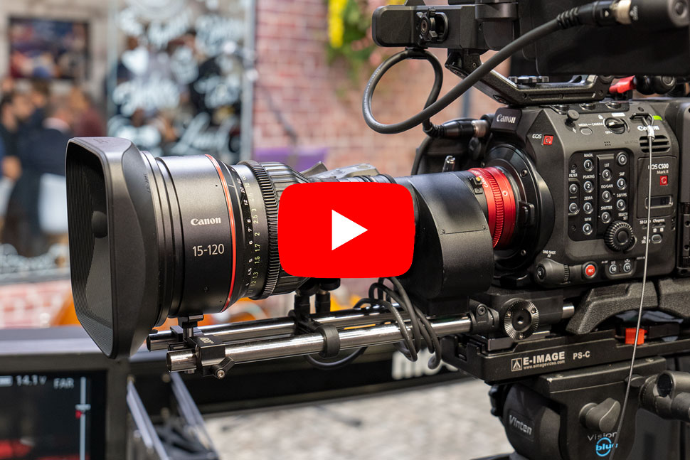 Arne Stadler stellt am IBC2022-Stand von Canon das neue Zoom CN8x15 vor.