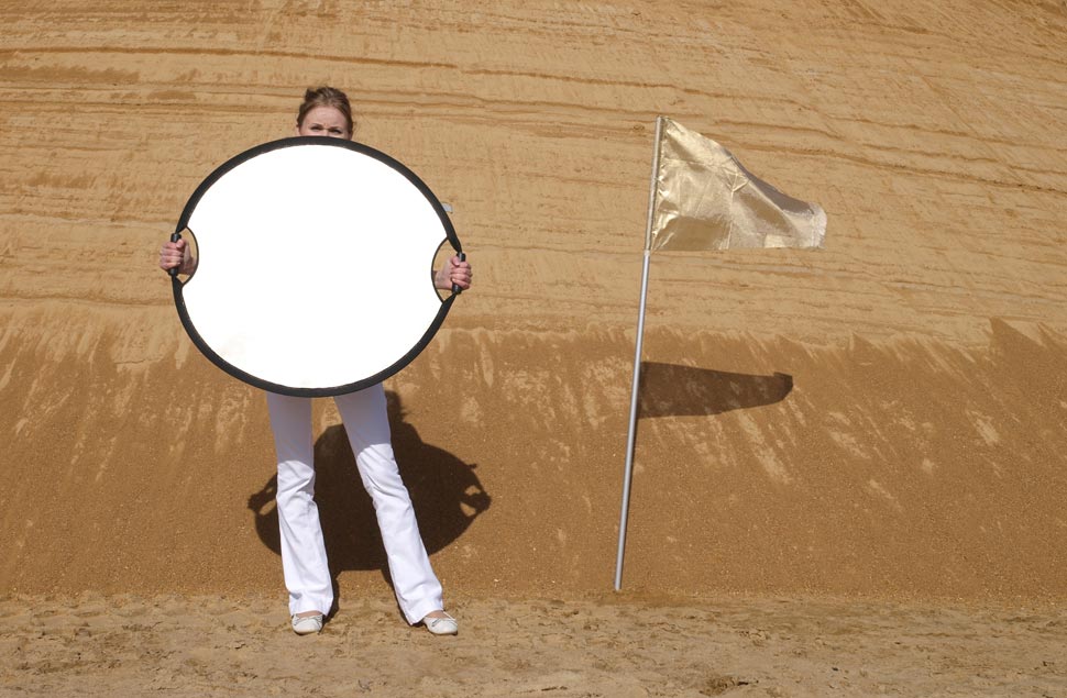 Aufklappbarer Reflektor zur Aufhellung und Lichtlenkung.