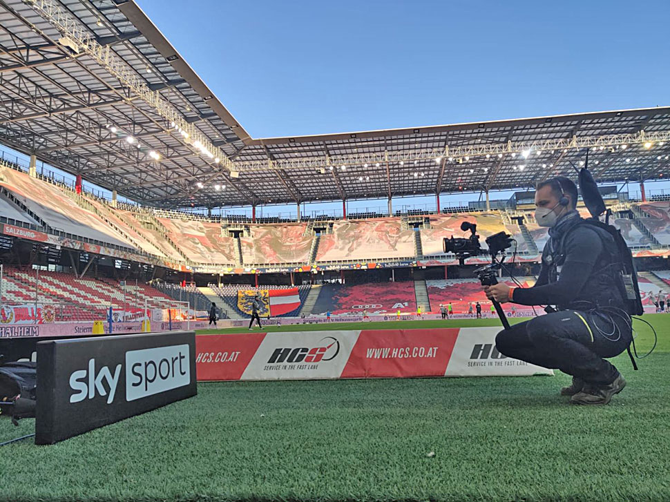 Ein stabilisiertes DSLM-Setup von TV SKYLINE liefert bei Fußballübertragungen Bilder wie im Spielfil…