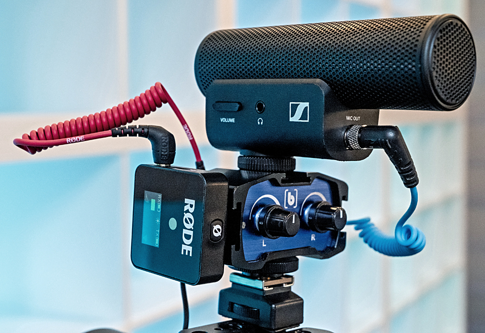 Kompaktes Aufsteck-Richtmikrofon mit Batteriebetrieb für DSLMs, Hybridkameras und Smartphones im Pra…