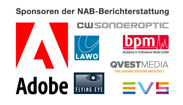 Wir danken den Sponsoren der NAB-Berichterstattung 2018: Adobe, BPM Media, CW Sonderoptic, EVS, Flyi…