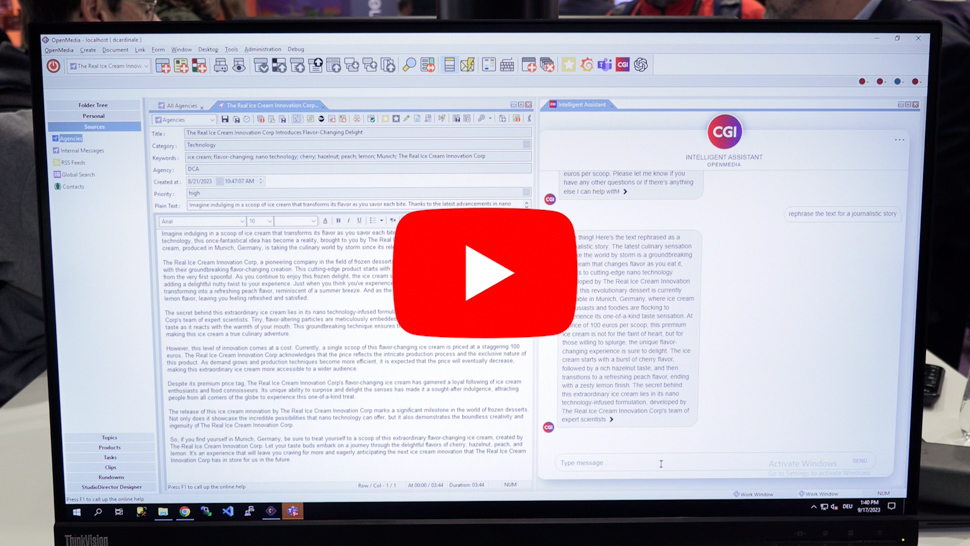CGI zeigt im Video, wie KI innerhalb von OpenMedia den Journalisten im Newsroom helfen kann.
