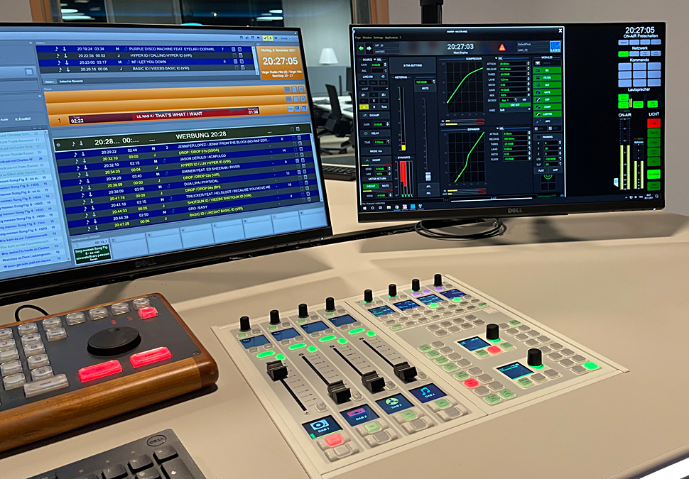 Radio 24 und Virgin Radio aus der Schweiz installierten Lawo-Pulte des Typs Diamond für Sendebetrieb…