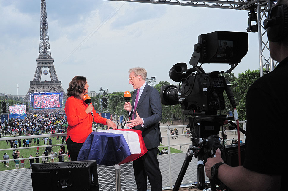 SporTV aus Brasilien betreibt während der Fußball-EM ein Studio nahe des Eiffelturms. Geplant und re…