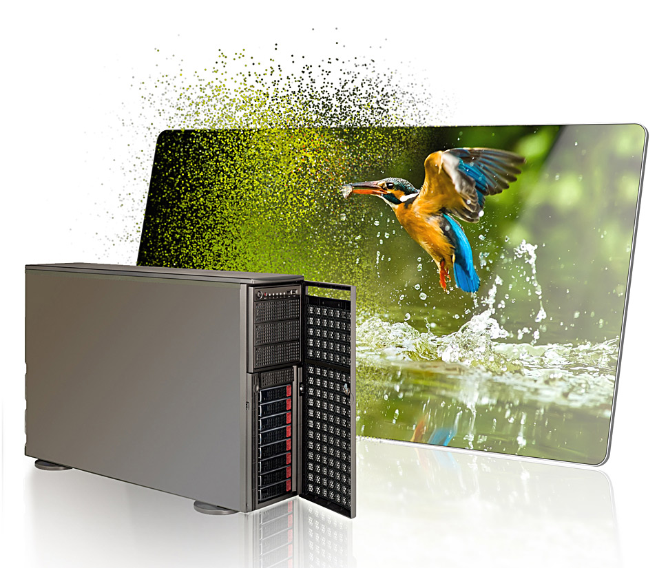 Die Grafikkarte ist speziell für große Multi-Bildschirm-Aufbauten, wie sie in der digitalen Anzeigen…