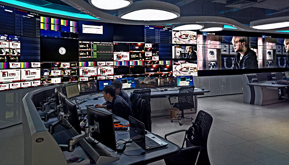 Die Zhejiang Radio & TV Group in China nutzt in ihrem neuen Gebäude in Hangzhou ein großes, leistung…
