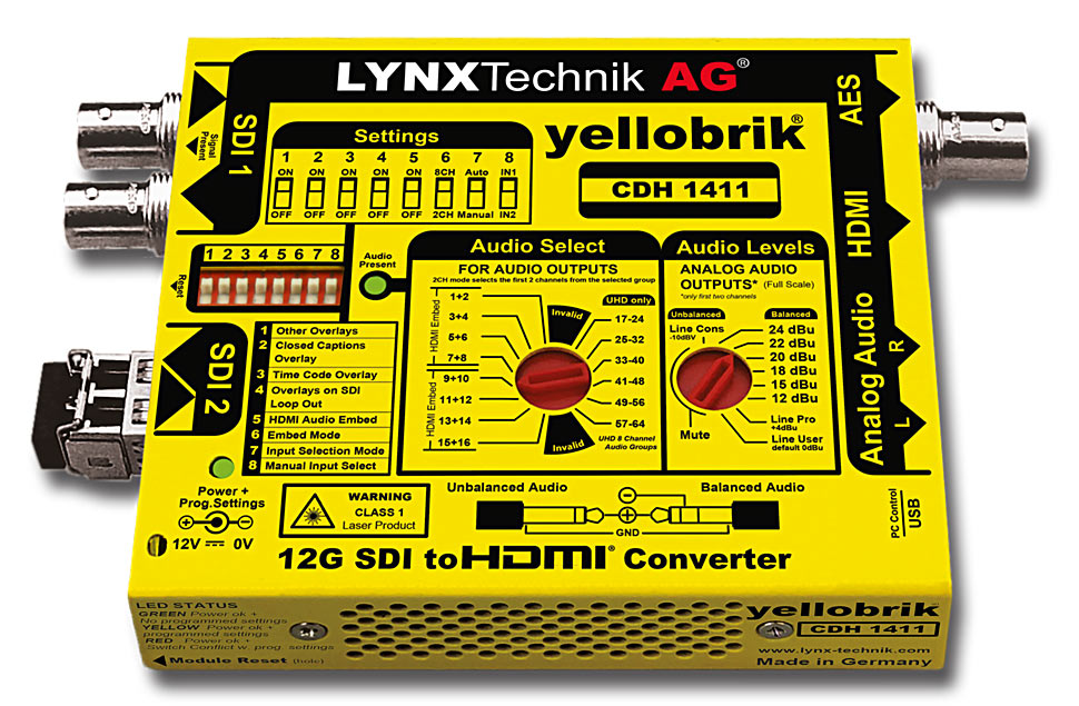 Ein neues Modul aus der Yellobrik-Familie von Lynx wandelt zwischen 12G-SDI und HDMI.