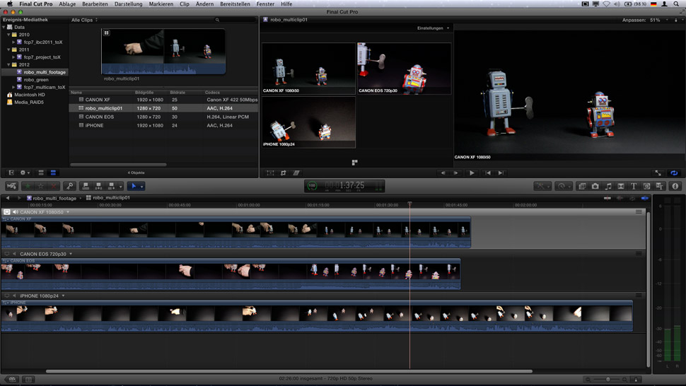 Mit dem Update auf Version 10.0.3 bietet Final Cut Pro X nun Multicam-Editing, bessere XML-Unterstüt…