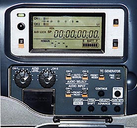 Den Ton zeichnet der AJ-D215 stets mit 16 Bit und 48 kHz auf, es gibt keine Umschaltung auf vier Kanäle. Zusätzlich zeichnet der AJ-D215 aber den DVCPRO-typischen Randspurton auf, den kein DV-Camcorder aufweist. Hier kann auf einer Spur Kanal 1, 2 oder eine Mischung aus beiden aufgezeichnet werden.