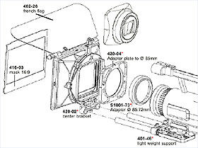 Weiter bietet Chrosziel zusätzliche Adapter und Ringe an, damit sich die Mattebox beim Panasonic-Camcorder AG-DVX100 mit der eingebauten Leica-Optik nutzen lässt. Auch für andere Camcordertypen gibt es Adapter.