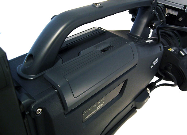 Ein Unterschied zwischen dem GY-DV5100 und seinem Vorgänger besteht in der Farbgebung: der neue ist auch dort ganz in schwarz gehalten, wo der 5000er noch Anthrazit-Töne aufwies.