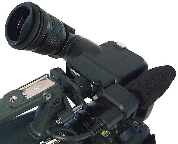 Wie schon beim DV5000 lässt sich auch an den DV5101 der externe Festplatten-Recorder DR-DV5000 anflanschen (einen Test dieses Geräts finden Sie hier). Dessen Integration hat JVC weiter erleichtert: Jetzt gibt es einen Umschalter, der in der Position »INT« die Aufzeichnung des DV-Signals auf Platte garantiert. Steht der Schalter hingegen auf DV, agiert der DV5101 wie ein »normaler« DV-Camcorder und gibt am DV-Ausgang ein DV-Signal aus.
