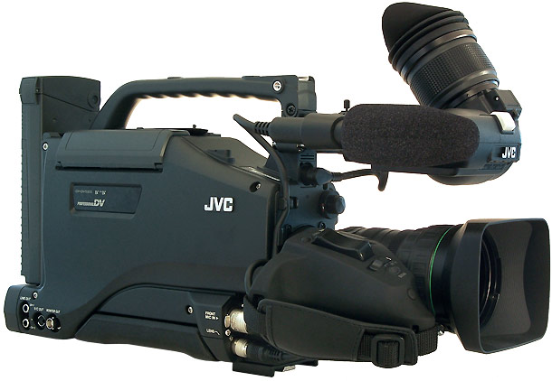 Der GY-DV5101 ist mit drei Halbzoll-Bildsensoren ausgerüstet und zeichnet im DV-Format auf. Zum Test trat der Camcorder mit einem 16fach-Halbzoll-Objektiv von Canon an (YH16x7K12U). Besondere Ausstattungsmerkmale des Schultercamcorders sind neben dem Wechselobjektiv die zahlreichen manuellen Einstellmöglichkeiten, ein ausklappbares 2,5-Zoll-Display, ein scharfer und kontrastreicher Schwarzweiß-Sucher, vier Filterräder, zwei XLR-Buchsen und ein DV-Ein/Ausgang. Die Produkt-Variante DV5100 verfügt nur über einen DV-Ausgang und kostet rund 500 Euro weniger als der 5101er, der auch DV-In bietet.