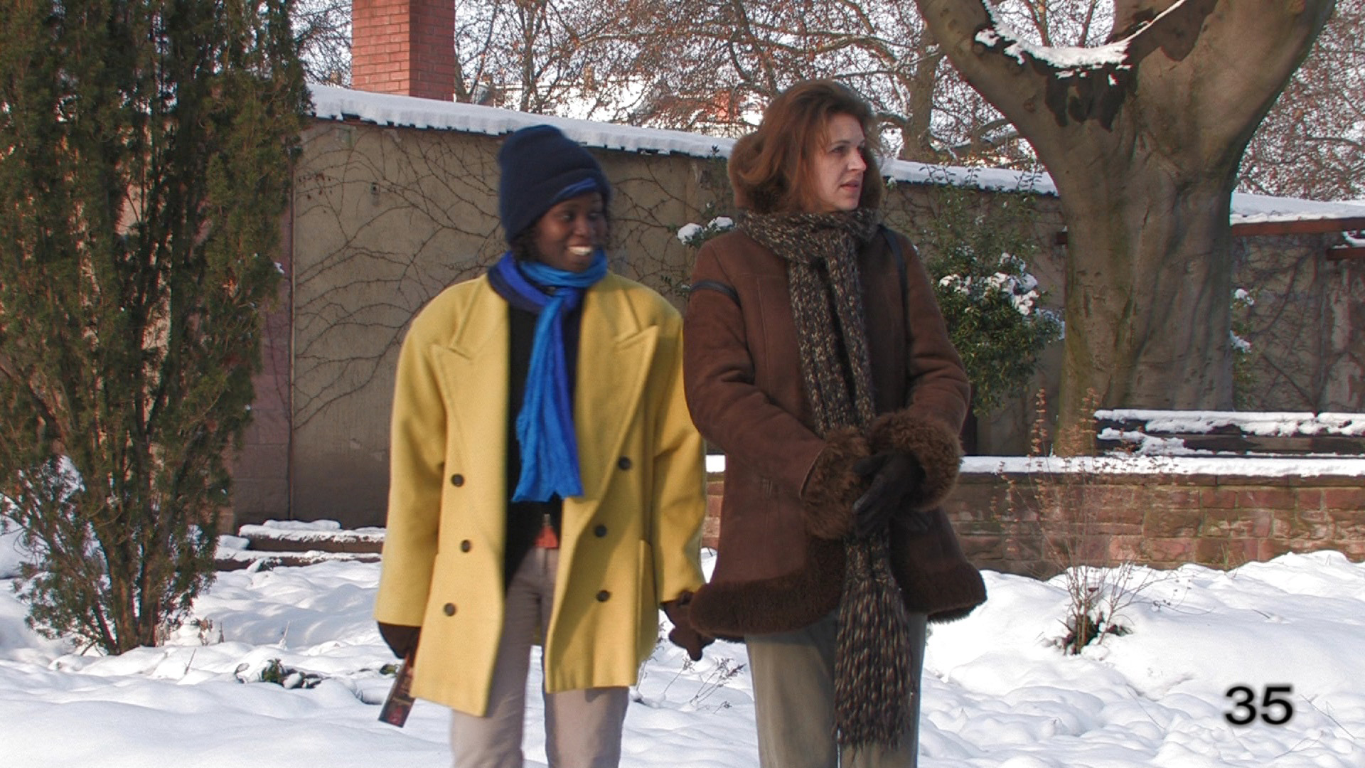 Beim Außendreh versprachen Schnee und Sonnenschein einen Kontrast, der dem XL H1 einiges abfordern würde, zumal eine der beiden Darstellerinnen Afrikanerin ist. Bei den Außenaufnahmen beschränkten sich die Veränderungen auf die Parameter Detail, Color Gain und Noise Reduction. Außerdem stand als weiterer Testpunkt an: Schwenken. Der XL H1 war während des gesamten Tests auf 25 Bilder pro Sekunde mit 1/25 s Belichtungszeit eingestellt. Das allein führt unter Umständen schon zu einem zu einem Shutter- oder Stroboskop-Effekt — in Abhängigkeit von Motiv, Brennweite und Schwenkgeschwindigkeit. Bei HDV kommt noch dazu, das über mehrere Bilder komprimiert wird (MPEG-2, Long-GoP), was zusätzlich nachteilige Effekte auf das Bild haben kann. Zum Vergleich wurden die Schwenks auch noch einmal in 50i gedreht.