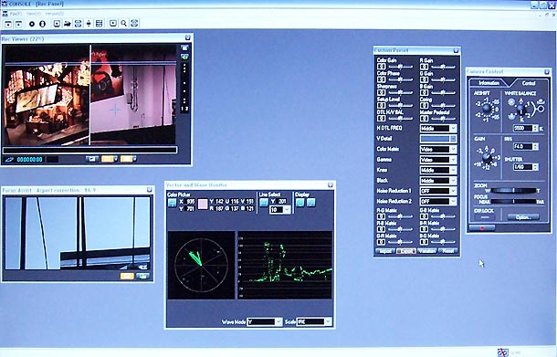 Beim Innendreh erlaubte es nicht nur eine komfortablere Einstellung der verschiedenen Parameter, sondern auch die Überwachung des Signals mit Waveform- und Vectorscope. Um möglichst gut vergleichen zu können, welche Auswirkungen verschiedene Einstellungen der Kameraparameter hatten, wurde jede Einstellung mehrfach mit jeweils etwas veränderten Parametern gedreht: Detail (Kantenanhebung), DTL Frequenz, Knie-Einstellung, Noise Reduction, Farbsättigung, Blackstretch und –-compress sowie Verstärkung wurden jeweils den Motiven entsprechend variiert. Die gleichen Motive wurden zudem mit verschiedenen Blendenstufen und anderen Einstellungsgrößen gedreht.